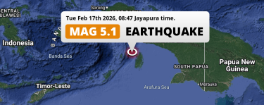 On Tuesday Morning a Shallow M5.1 Earthquake struck in the Aru Sea 116km from Tual (Indonesia).