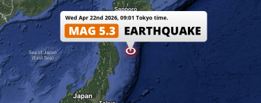 Shallow M5.4 AFTERSHOCK hit in the North Pacific Ocean 195km from Hachinohe (Japan) on Tuesday Afternoon.