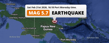 Significant M5.7 Earthquake struck on Saturday Afternoon in the Bismarck Sea near Madang (Papua New Guinea).