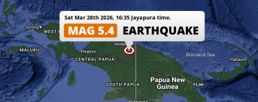 Shallow M5.4 Earthquake hit 125km from Jayapura in Indonesia on Saturday Afternoon.