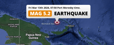 Shallow M5.2 Earthquake hit in the Bismarck Sea 218km from Kimbe (Papua New Guinea) on Friday Morning.