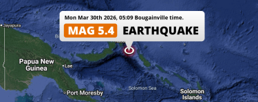 A 5.4 magnitude earthquake hit near West New Britain on the night of March 30, 2026 at 04:09 local time (Pacific/Port_Moresby). The center of this earthquake was located 398km east of Kimbe at a depth of 43km under water in the Solomon Sea. Check the list on our website for any earthquakes occurring near West New Britain, Papua New Guinea in the past hours.