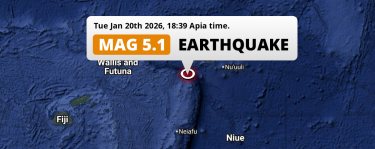 Significant M5.1 Earthquake hit in the South Pacific Ocean 205km from Apia (Samoa) on Tuesday Evening.